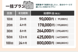 短期間で集中して通いたい人向けだと思います。 楽して結果を出したい人には向かないかもしれません。 その分、やることは明確でした。 引用:公式
