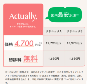 - 3 料金どこが違う?Actually(アクチュアリー)と他ニキビ治療クリニックの価格比較