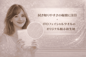 実は最近、「タオルの代わりに使うフェイシャルタオル」が注目されており、その中でも名前がよく挙がるのがITO フェイシャルタオルです。